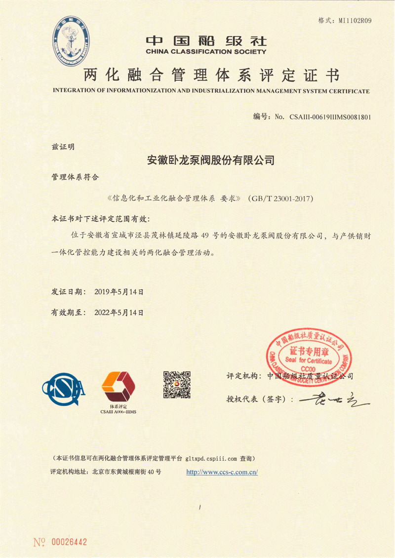 安徽臥龍泵閥現已取得二項發明專利,二十多項實用新型專利每年都有近十多個的新產品投入市場